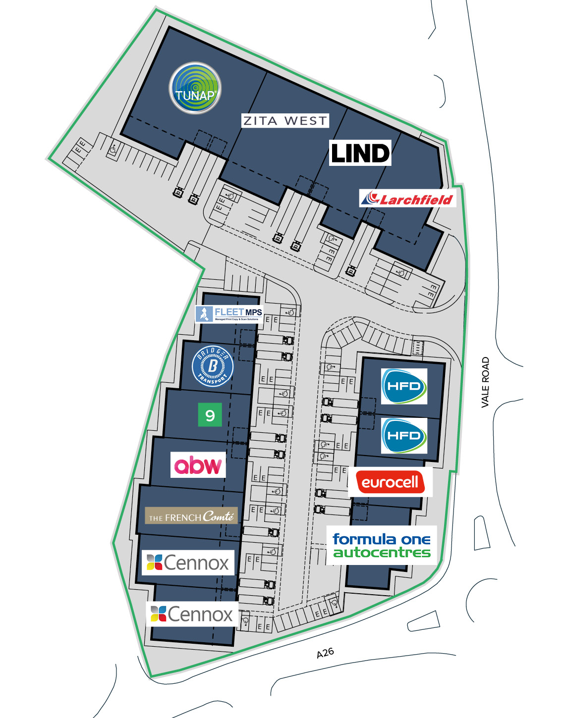 - Excellent visibility from the A26 and Vale Road